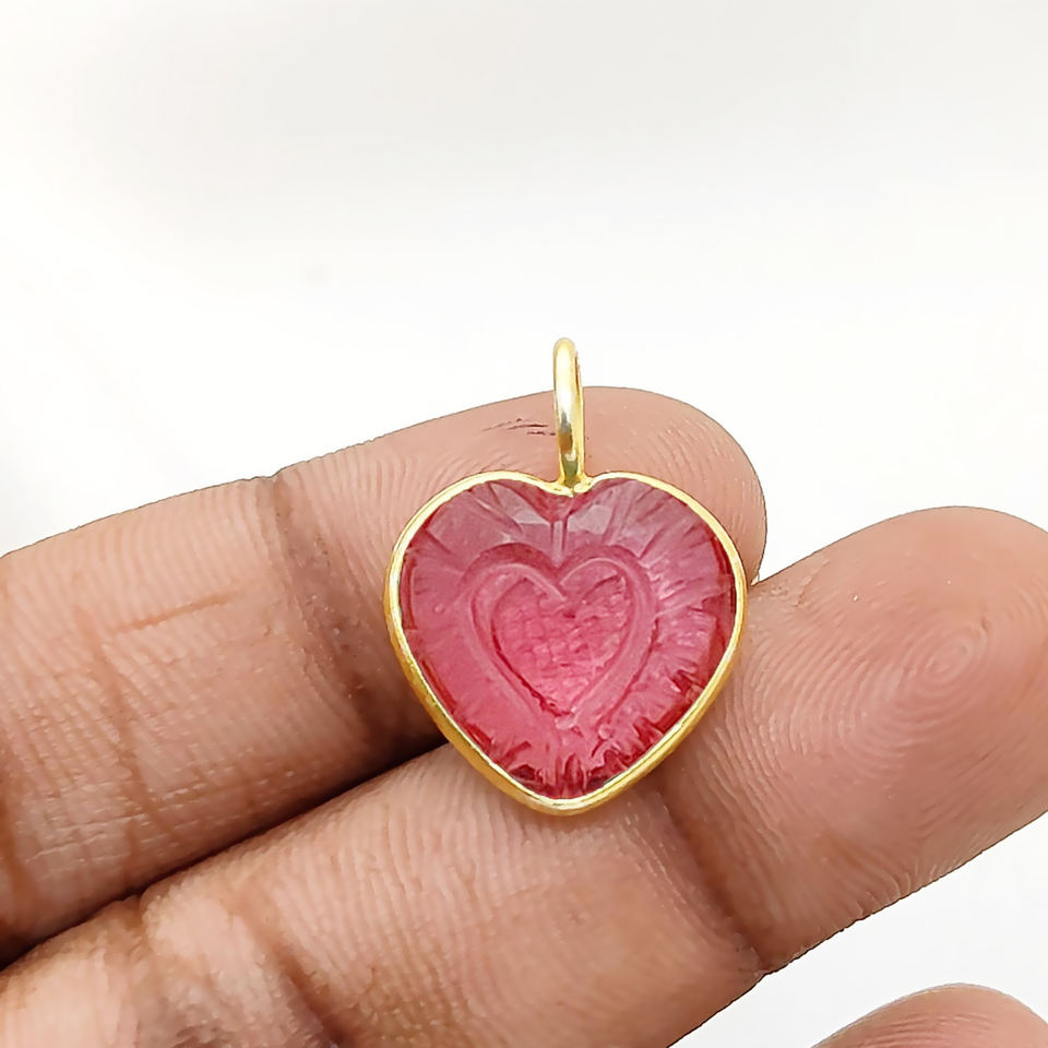 Wholesale Fashion Pendant Necklace with Handmade Rainbow Moonstone Gemstone Heart Carving Gold Vermeil Bezel Set Amazing Charm