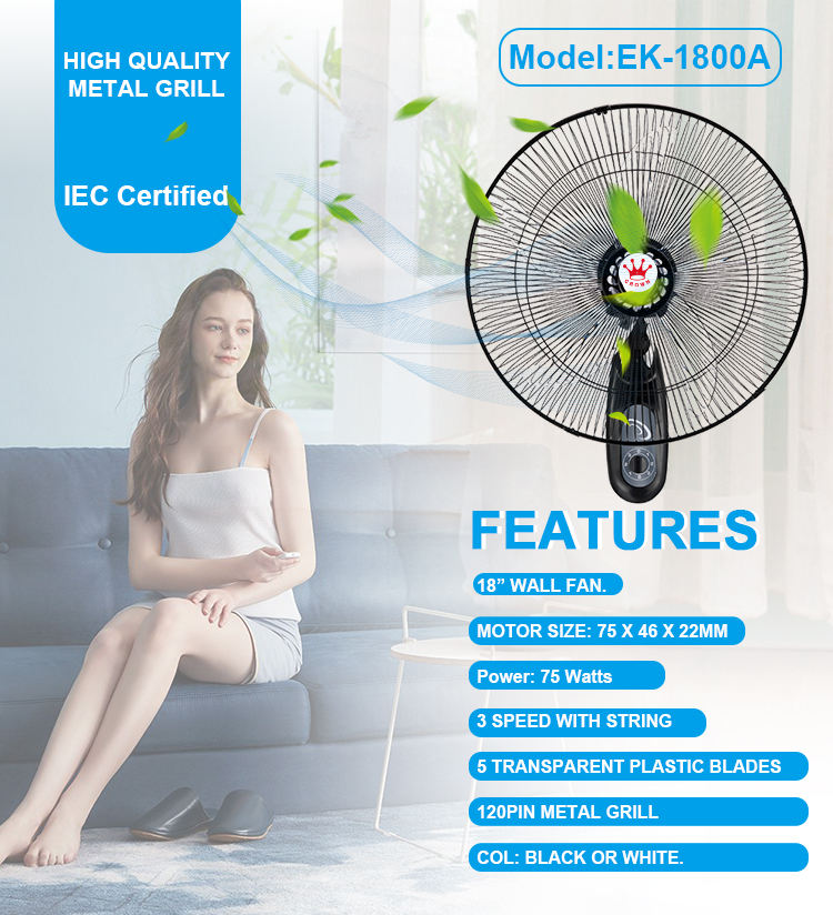 Wholesale Fashion Safety Soundless Oscillating Electric 18 Inch Wall Mounting Fan