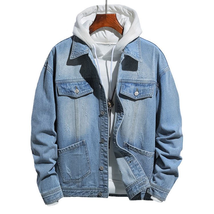 Wholesale Fashion Spring Jacket Denim Big Pocket Solid Color Casual Denim Jacket for Men