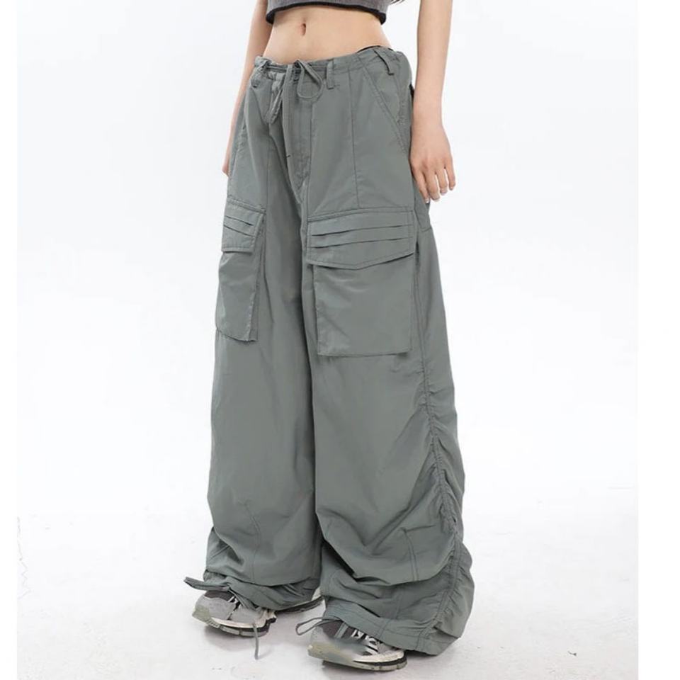 Wholesale Fashion Streetwear Y2K Style Low Rise Slouchy Ruched Cargo Pants Relax Style Puls Size Women's Pants & Trousers