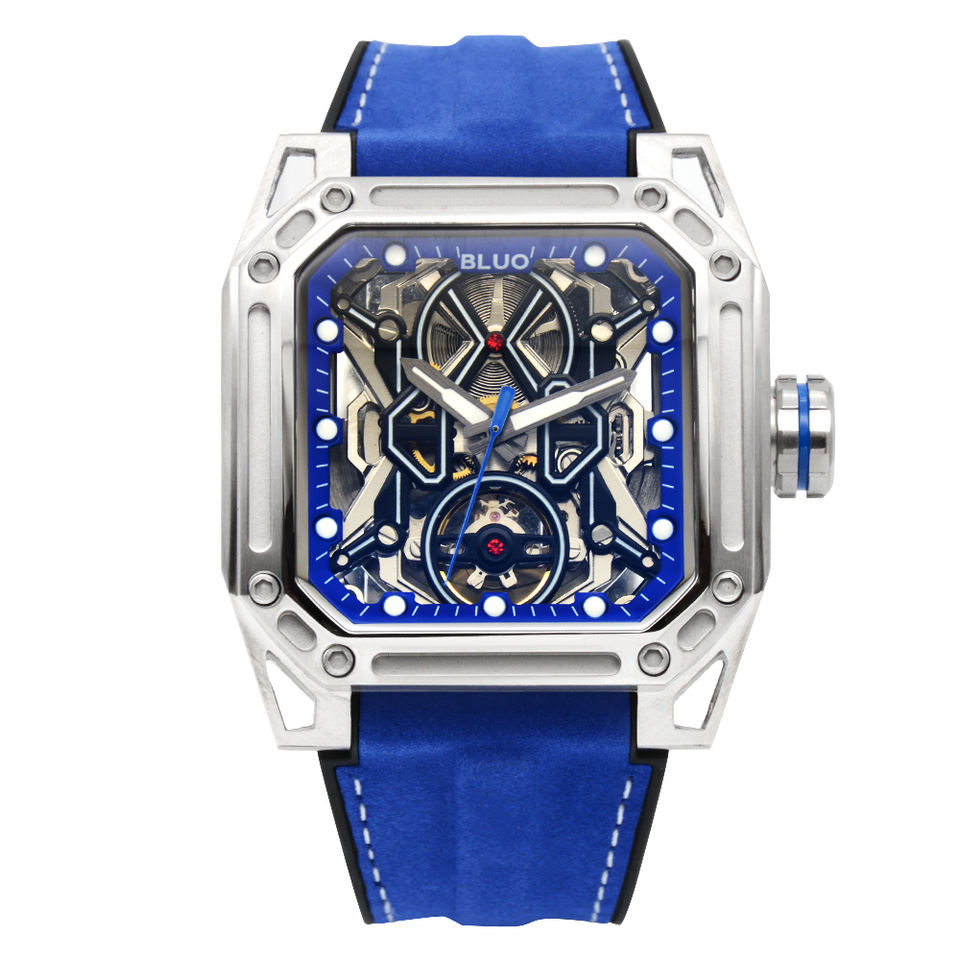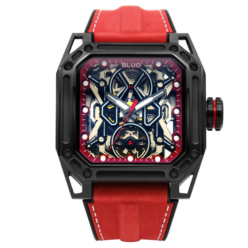 Wholesale Fashion Unique Luxury Retro High Quality Business Belt Men Barrel Type Hollow Design Mechanical Watch ODM OEM
