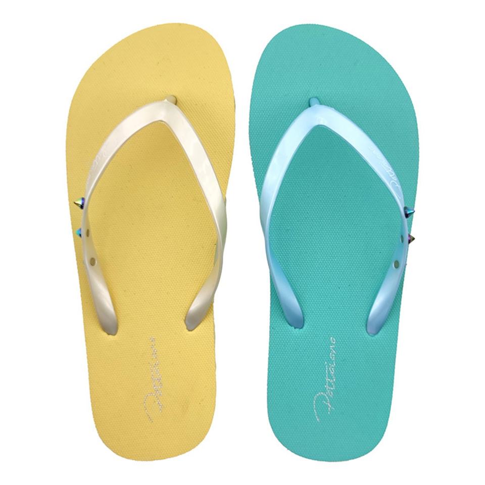 Wholesale Fashion Women Flip Flops Shiny Strap Metal Studs Beach Sandals Soft PE Sole Summer Slippers