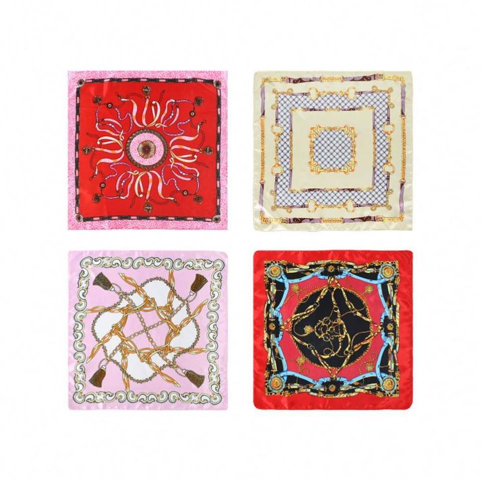 Wholesale Fashionable 50 cm Custom logo Chain Flower Polyester Silk Small square Scarves for Women YKH0084