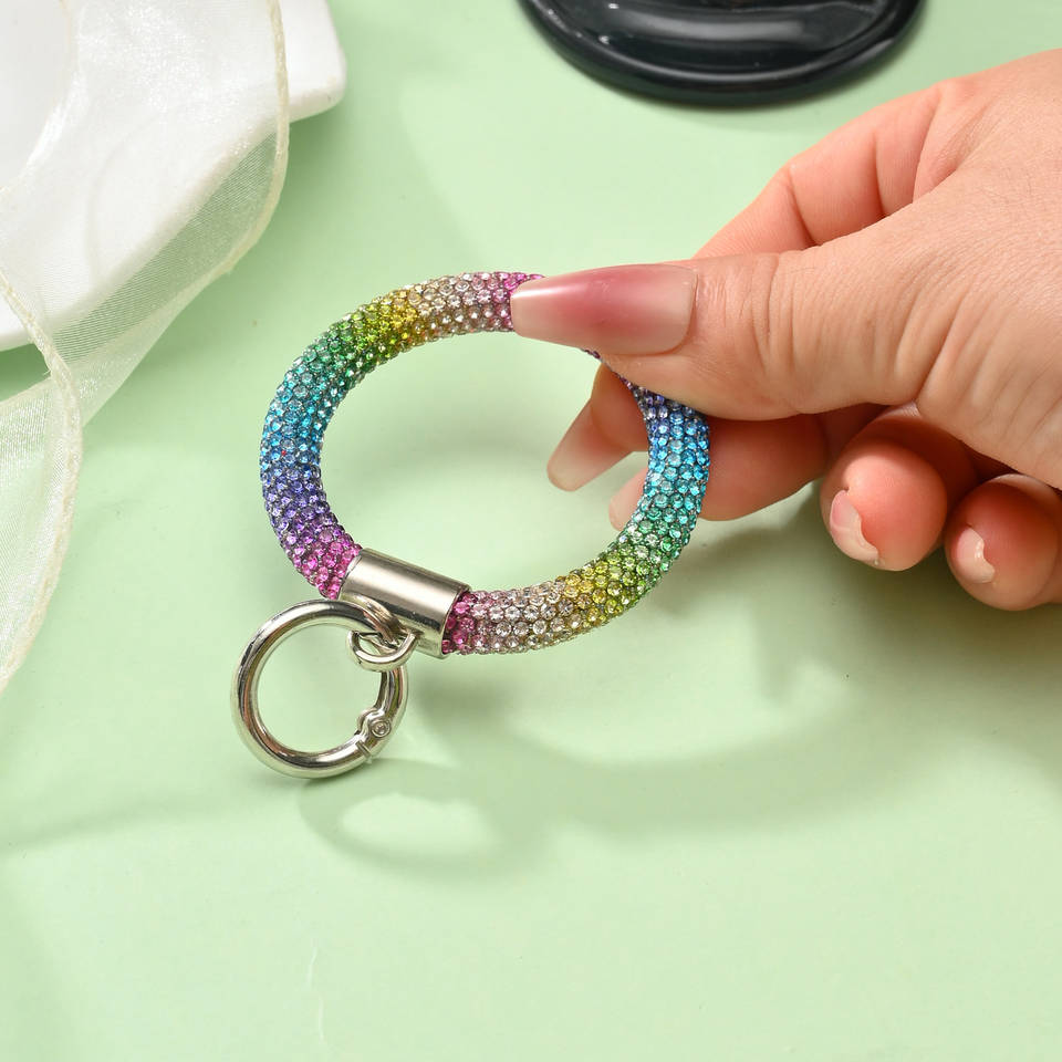 Wholesale Fashionable Circular Hanging Rope Mobile Phone Accessories Key Chains with Rhinestone Stylish Metal Key Chains