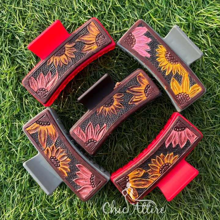 Product name:Hand Tooled Leather Women Hair Claw Clip