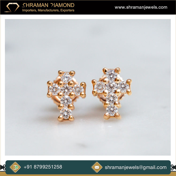 Wholesale Fast Shipping Hip Hop Jewelry Iced Custom Religious Jesus Cross Lab Grown diamonds Hoop Earrings Cute 10K Solid Gold