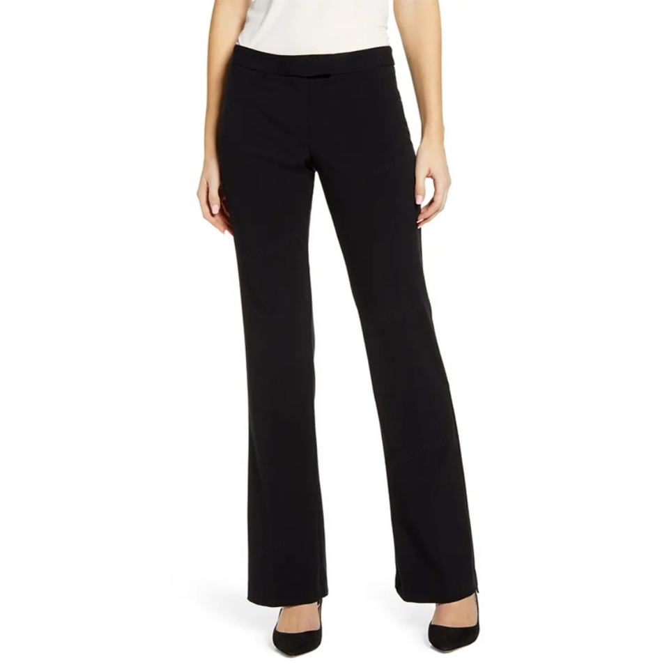 Wholesale Female Work Wear Official Black Zip Fly Formal Suit Trousers Women Wide Leg Pants