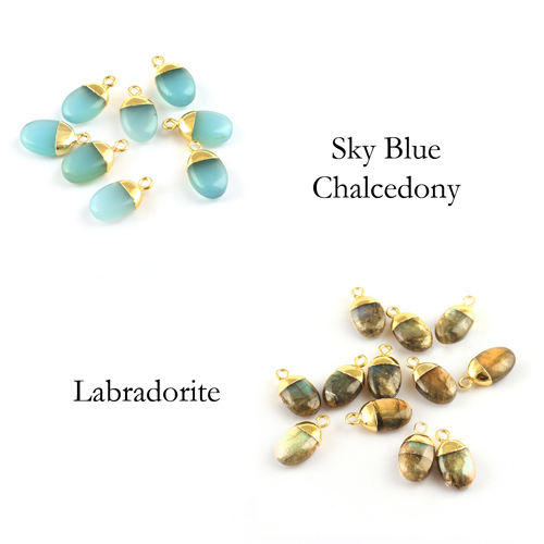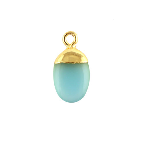 Wholesale Finding Jewelry Oval Shape Blue Chalcedony Components Connector Gold Plated Single Bail Diy Charm Making Connector