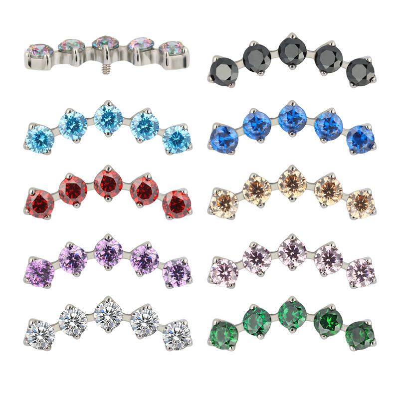 Wholesale Fine Jewelry Labret Earring Body Piercing Titanium 16G Internally Thread 5 Prong Set CZ Stone Top Nose Ring Jewelry