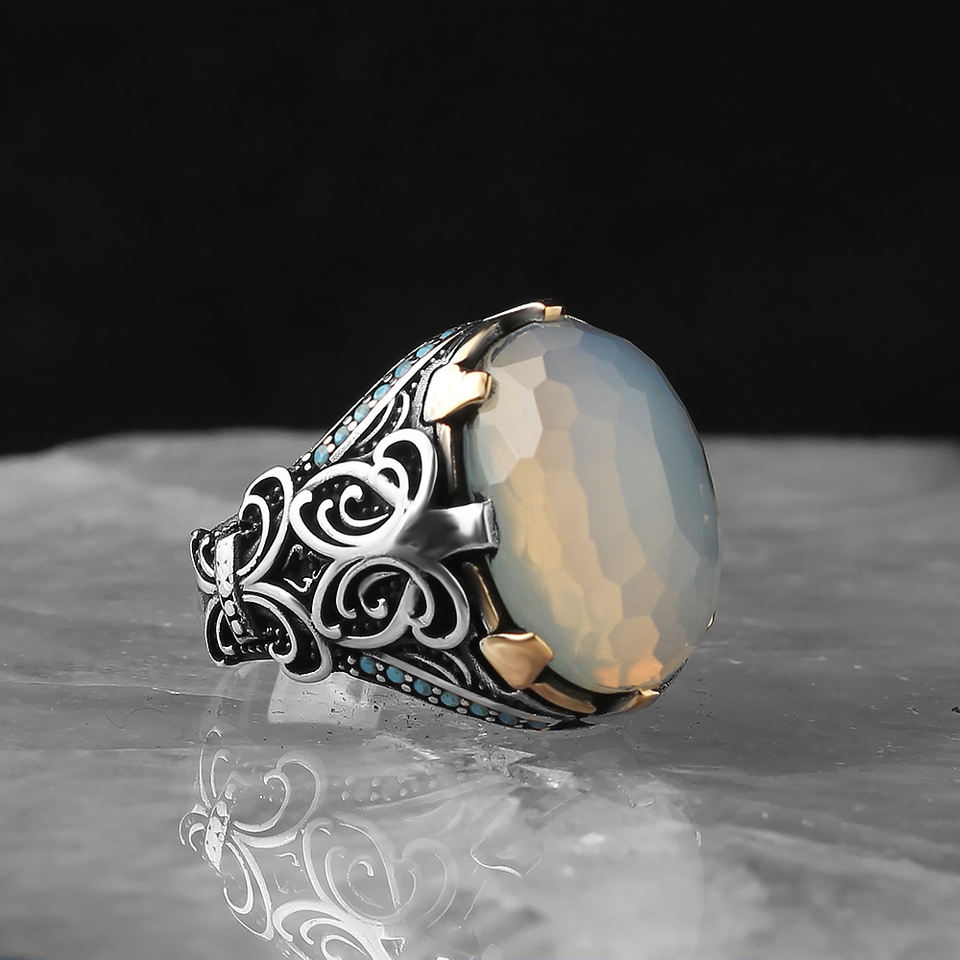 Wholesale Fine Jewelry S925 Sterling Silver Men's Ring with Natural Stone Custom Logo Turkey King Design for Wedding Engagement