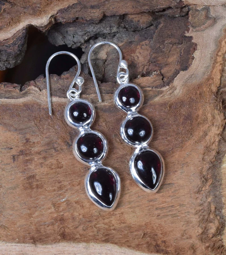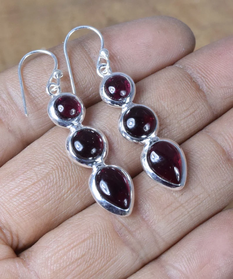 Wholesale Fine Quality 925 Sterling Silver Red Garnet Gemstone Handmade Hook Drop Dangle Jewelry January Birthstone Earrings