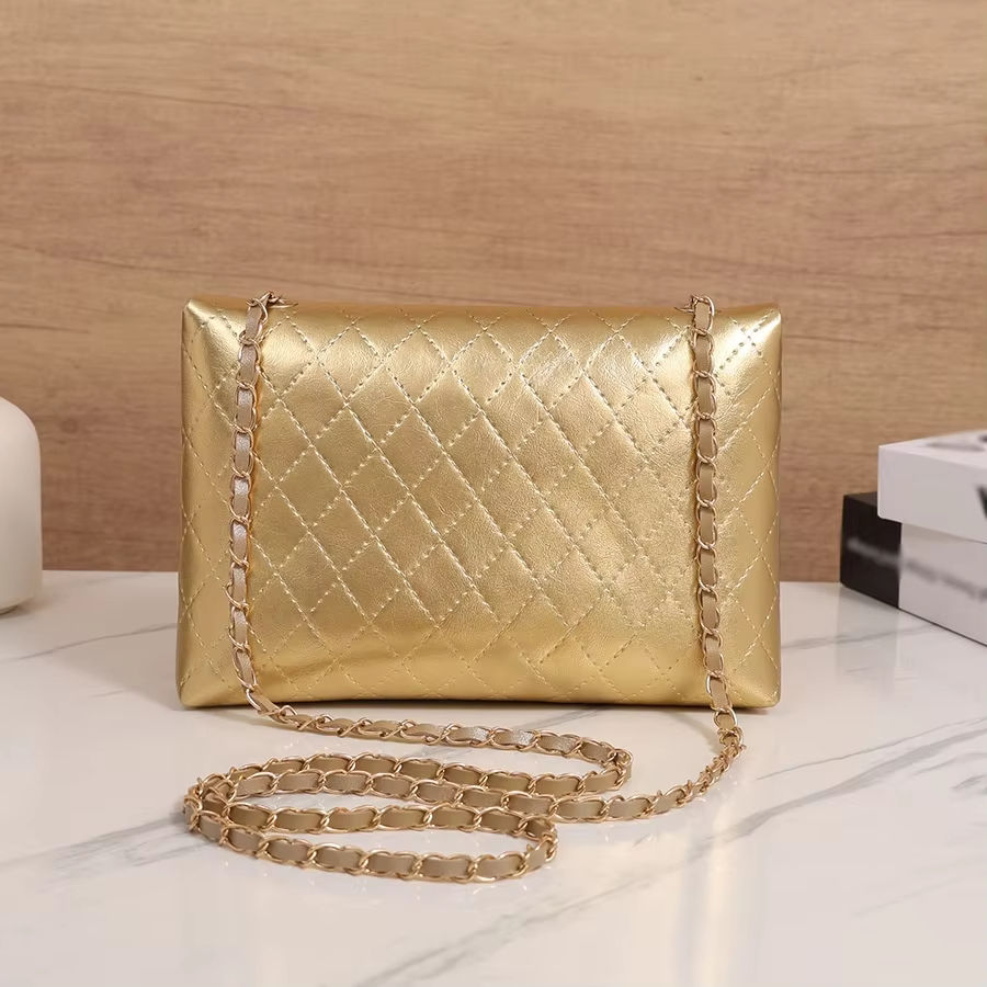 Wholesale Fine Quality Diamond Check Shoulder Bag Stylish Gold Crossbody Handbag Single Chain Fashionable Zip Closure for Summer
