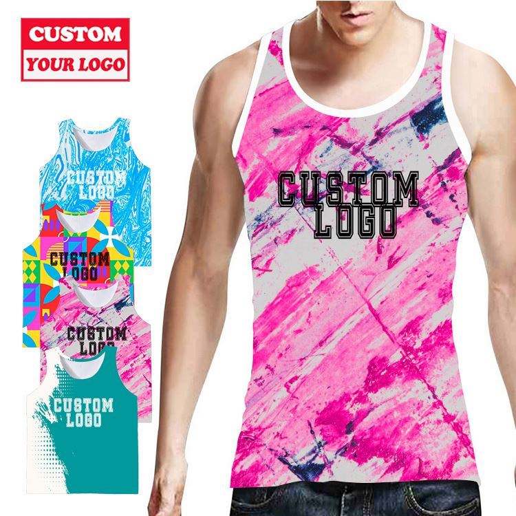 Wholesale Fitness Workout Sleeveless Muscle Vest Polyester Stringer Gym Male Shirt Men Logo Tank Top Custom T Back Singlet