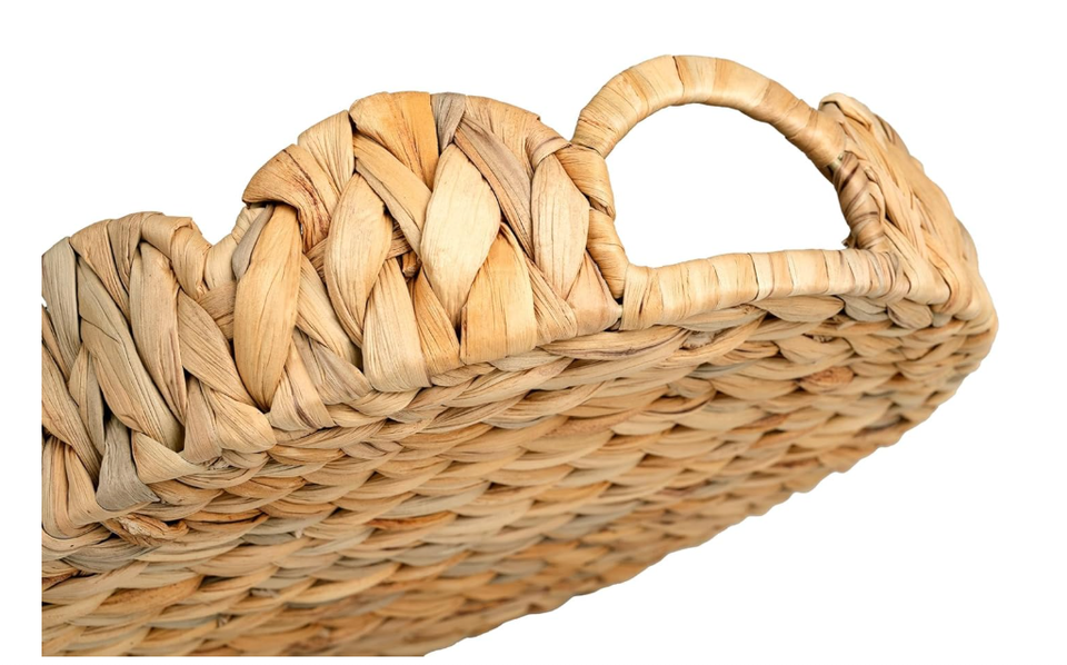Product name:Round Natural Water Hyacinth Serving Tray with Handles from Vietnam
