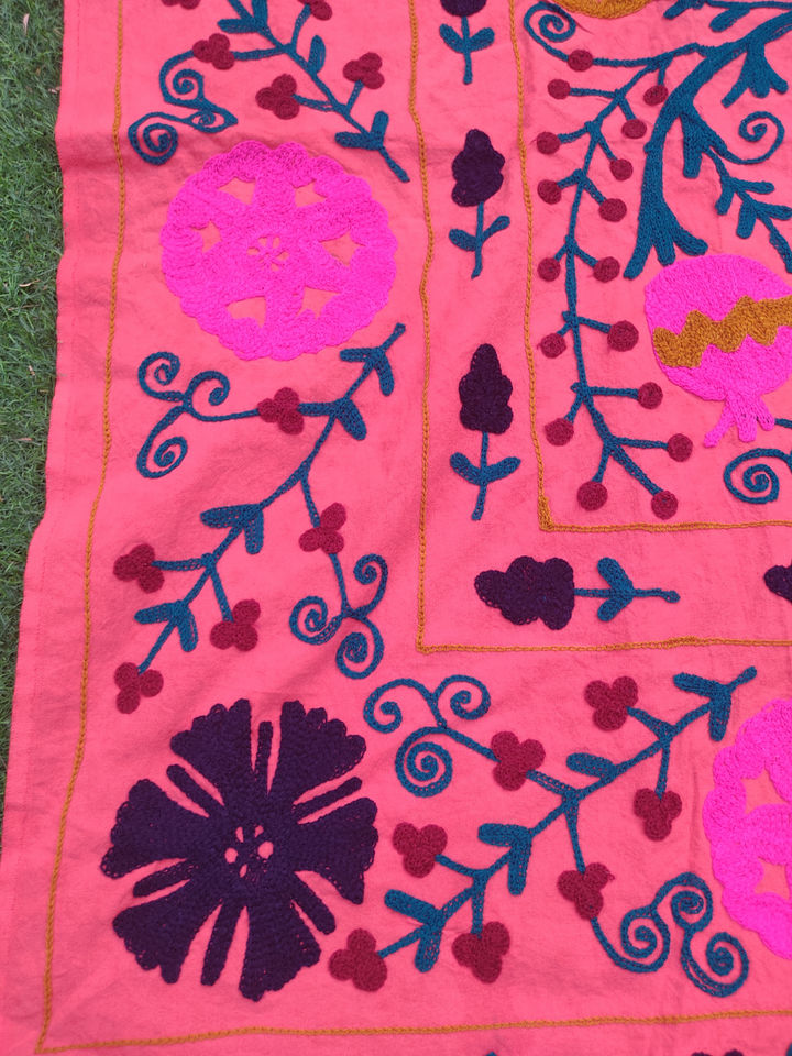 Keywords:Traditional Uzbek Suzani Embroidered Bed Sheet