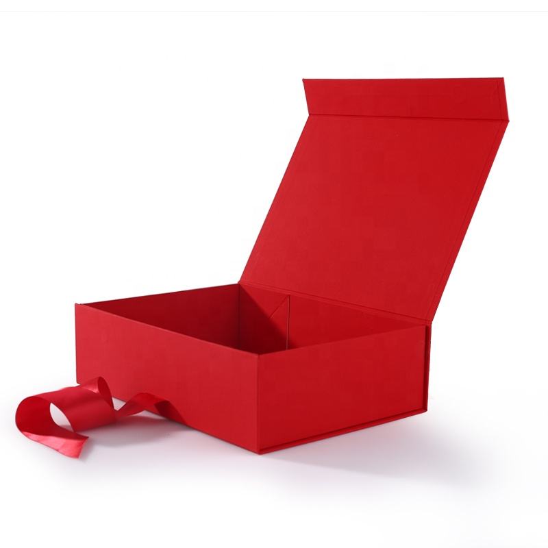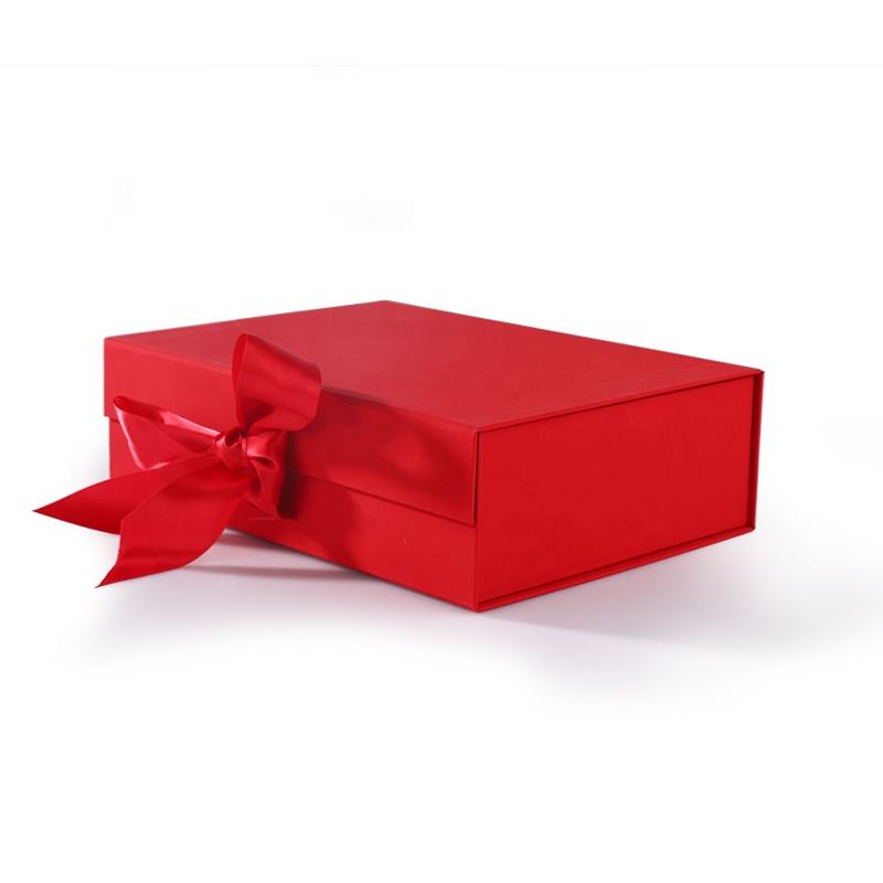Wholesale Foldable Gift Packaging Box Red Color with Ribbon Matte Finish Embossed UV Printing Foil Specifications