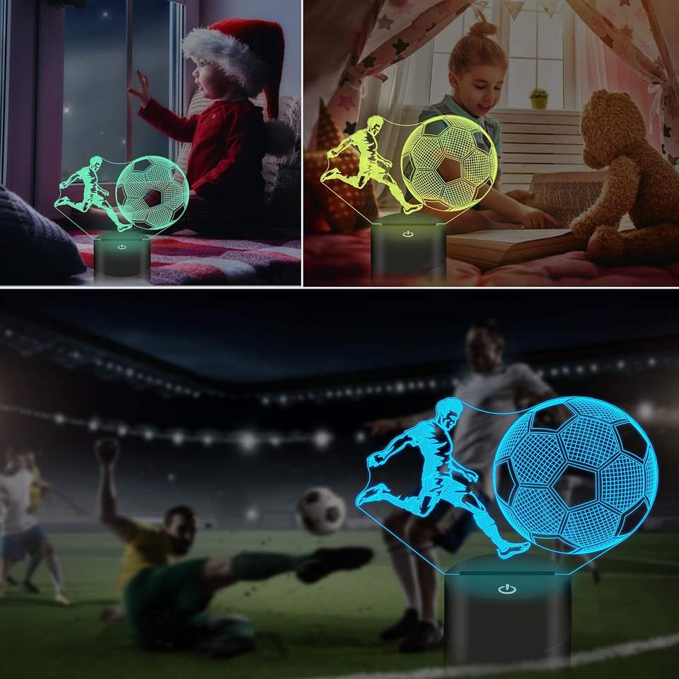 Wholesale Football Player Shape Soccer Table Lamp 3D Acrylic Plate USB LED Night Light Modern Eco-friendly 16 Colors Bedroom
