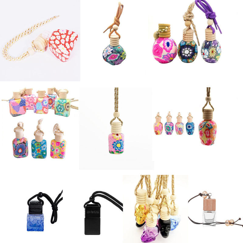 Wholesale Frosted Colored Mini Round Portable Car Aromatherapy Diffuser Glass Bottle with Hanging Rope