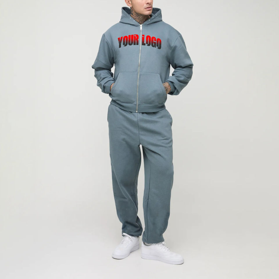 Wholesale Full Zip up Customized Hoodie & Sweatpants Luxury 2 Piece Set Women Blank custom printed logo men's twins set