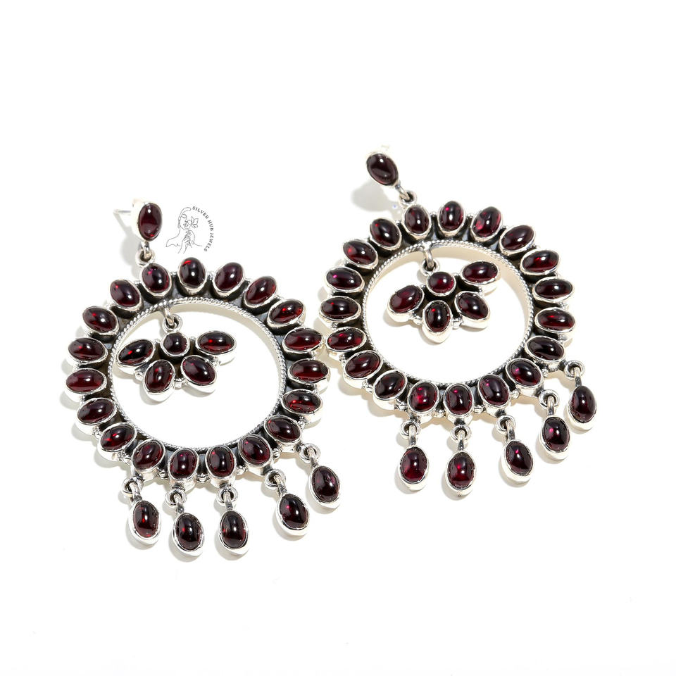 Keyword:garnet Natural Gemstone Silver Handmade Earrings Jewelry
