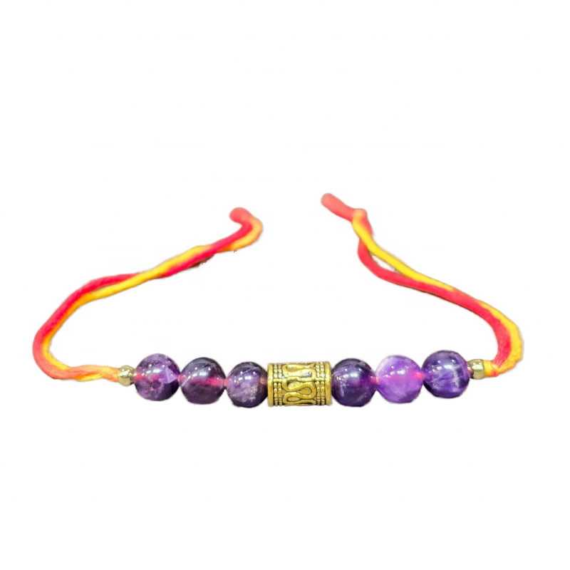 Wholesale Gemstone Amethyst Rakhi For Brother Sister Love Indian Rakhi Festival Polished Healing Feng Shui Rakhi for Women