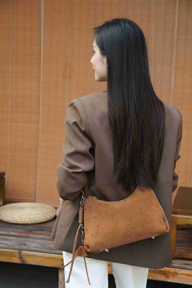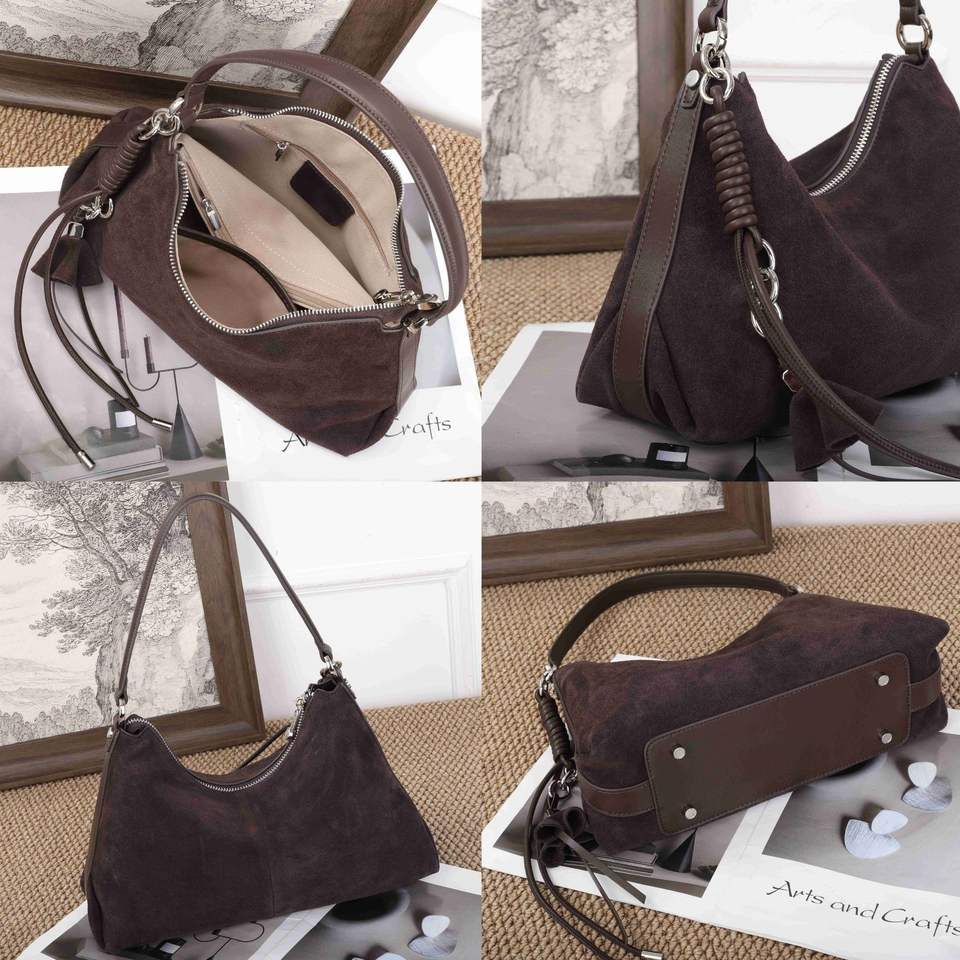 Wholesale Genuine Leather Handbag Round Shape Real Suede Bag Small Tote Retro Real Leather Crossbody Bag Ladies Trendy Bag