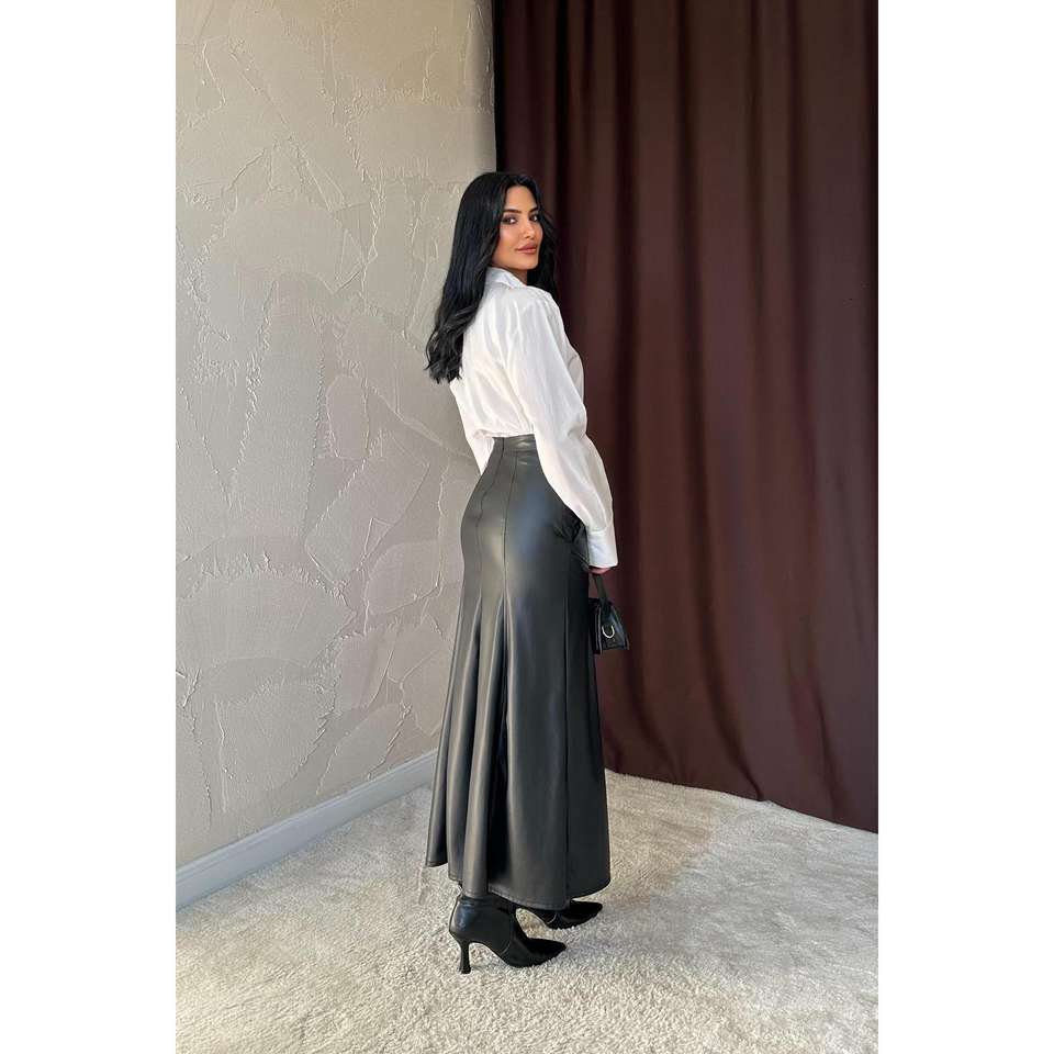 Wholesale Genuine Leather Pencil Skirt with Zipper Detail Black Woolen Fur Plain Style XS Winter Size