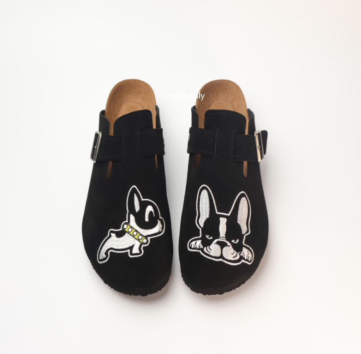 Wholesale Genuine Leather Slip-On Shoes, Cowhide Suede, Fur Print Embroidery
