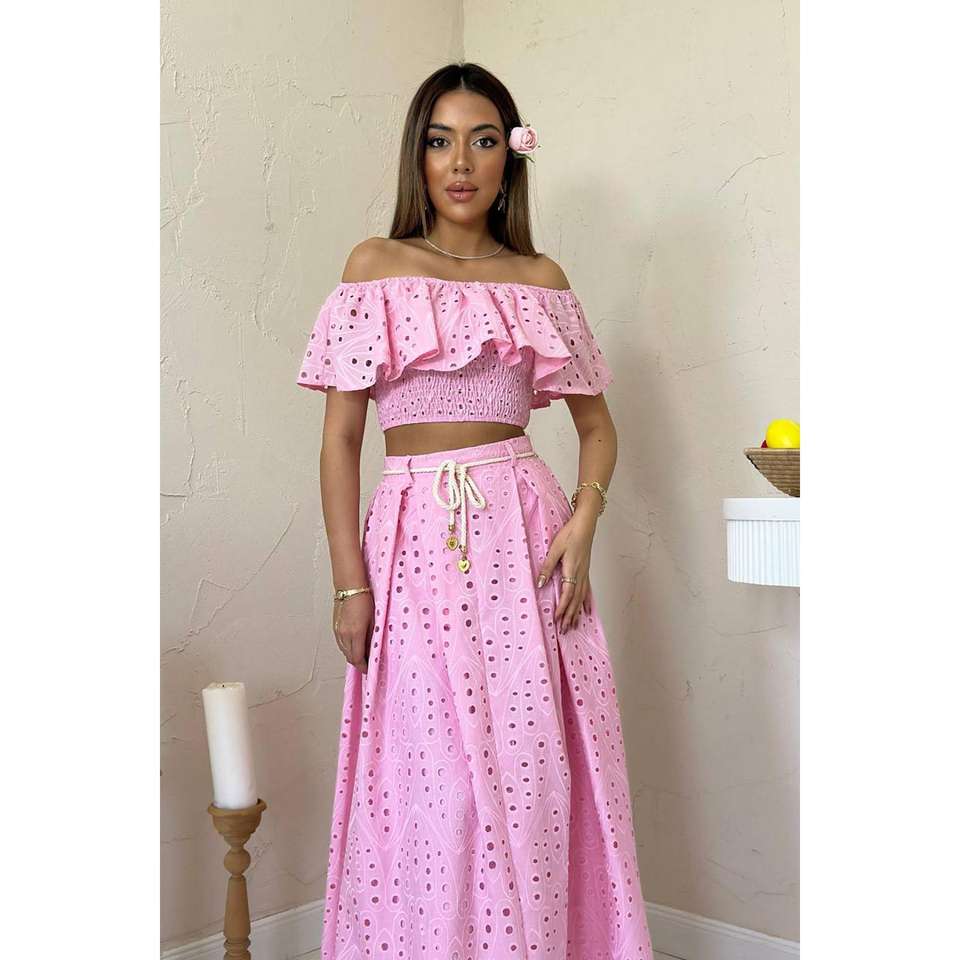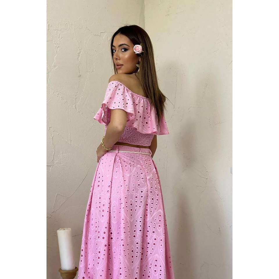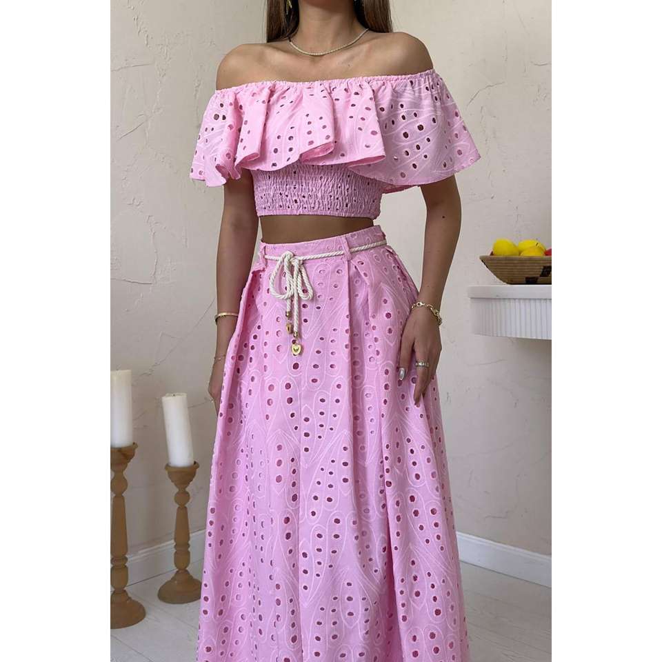 Wholesale Gipel Pink 2-Piece Set Short Office Outfits Above Knee Blouse and Skirt for Summer or Fall