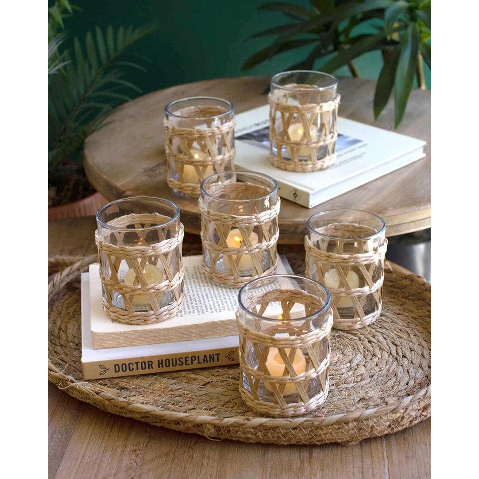 Wholesale Glass Candle Holders with Seagrass Wrapping Charming Table Decoration Christmas Candle Container OEM From Vietnam