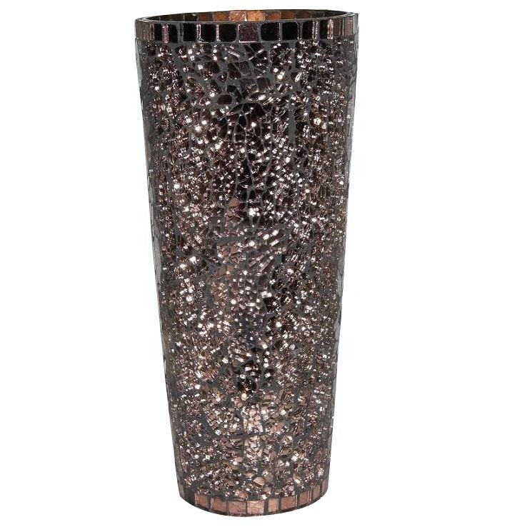 Wholesale Glass Home Decorative Bronze Color Flower Mosaic Glass Vases Handbag Vase Flower Pot for Living and Tabletop Decor