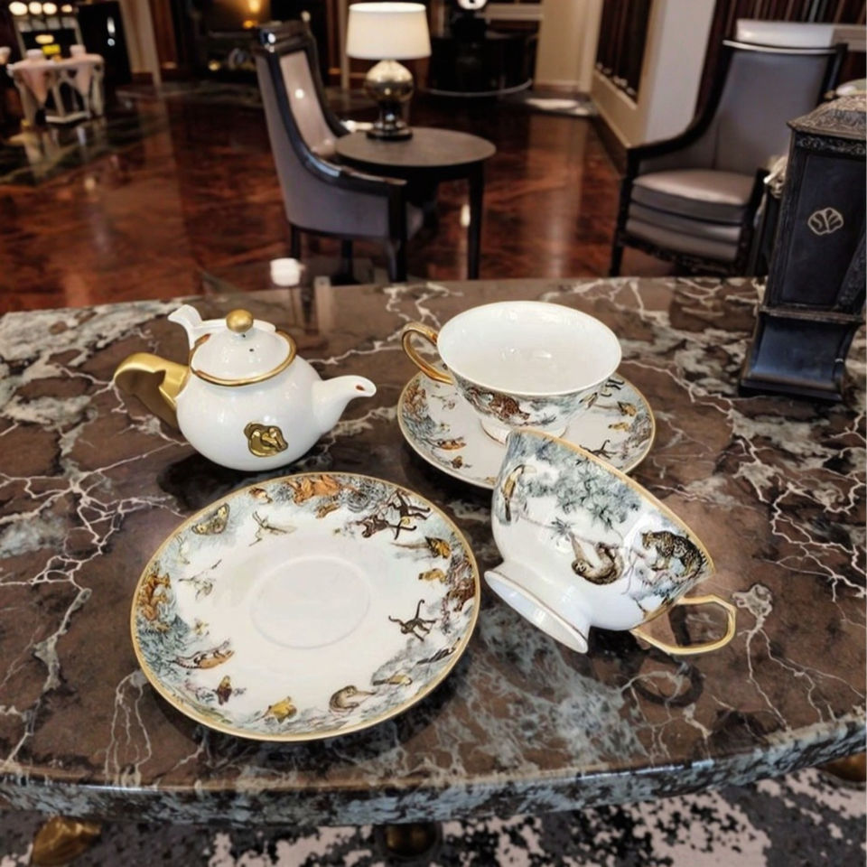 Wholesale Gold Porcelain Tea Cup Set Jungle Animals Coffee Cup Set Bone China Tea Cup Sets for Arabic