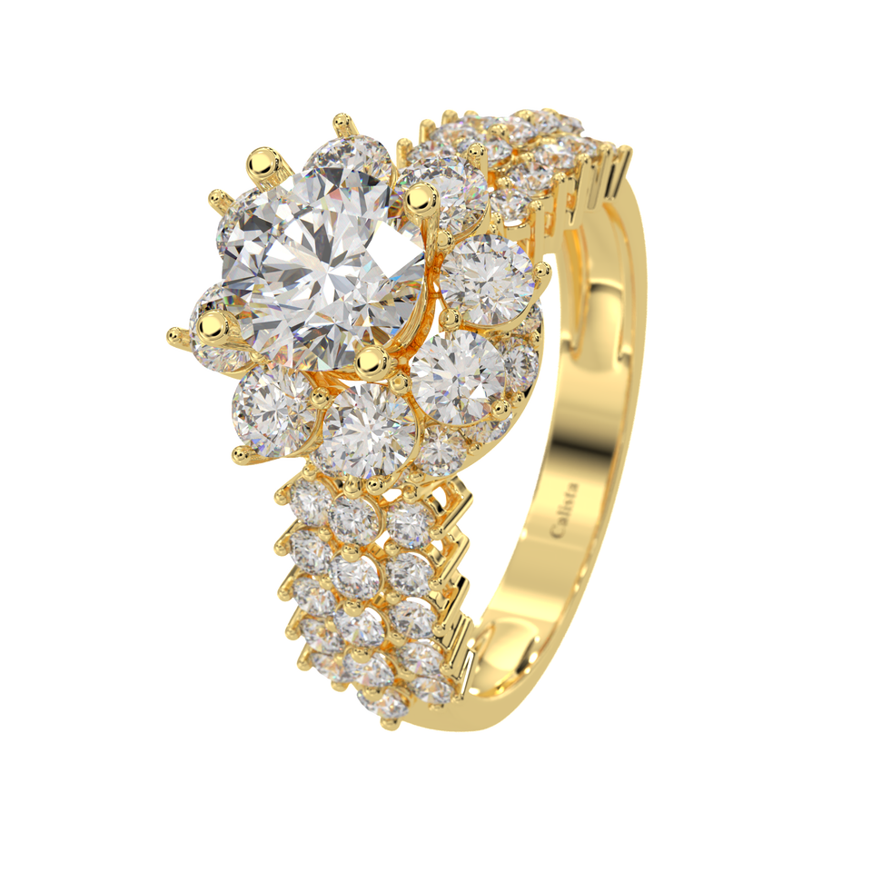 Wholesale Gold Rings Jewelry Fashion 10K Yellow Gold Flower Shape CZ Round Cut Diamond Insert Ring Vietnam Manufacturer