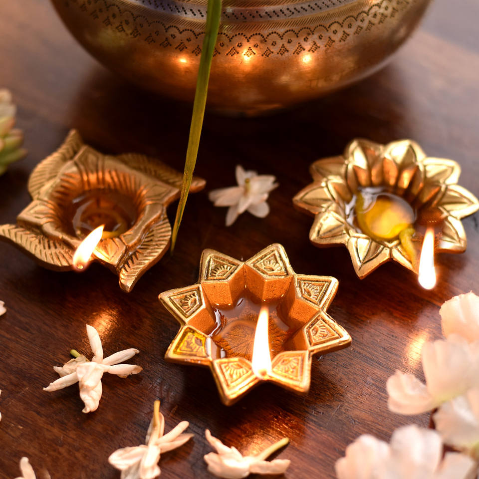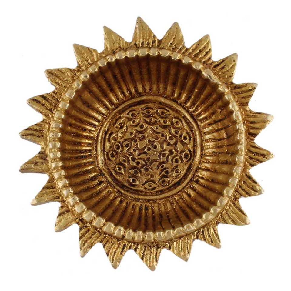 Wholesale Golden Brass Oil Lamp Diya Round Sun Flower Shaped Oil Lamp for Home Decoration BOL-325
