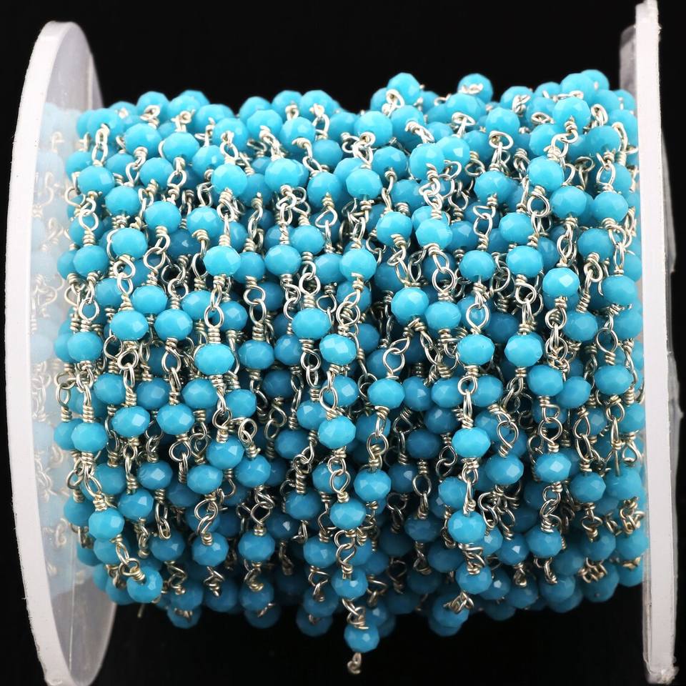 Blue Turquoise Hydro Rosary Style Beaded Chain