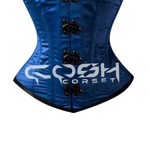 Wholesale Good Price High Quality Overbust Steel Boned Blue Satin Corset With Front Clasp Supplier From Pakistan