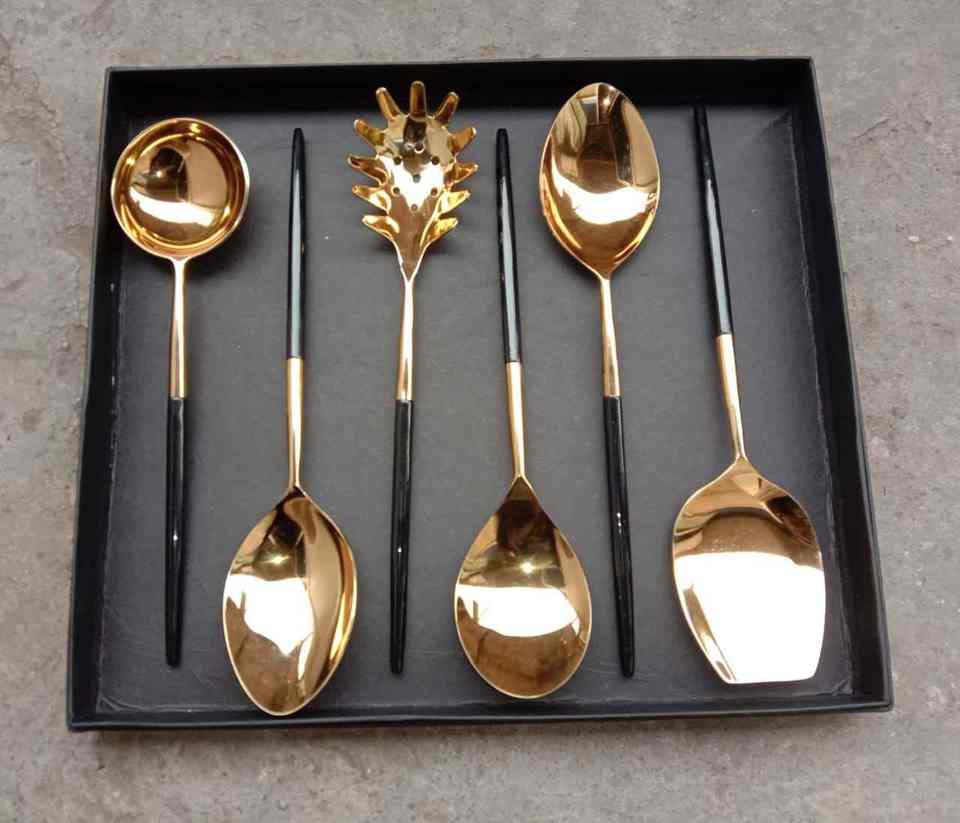 Wholesale Graceful Matte Gold 5-Piece Brass Stainless Steel Flatware Set Modern Satin Finished Kitchen Cutlery Utensils