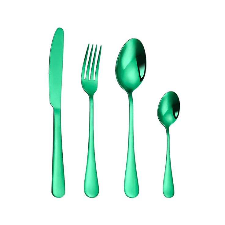 Wholesale Green Colour Stainless Steel Matte Cutlery Set Colourful Wedding Party Flatware Knife Fork Spoon for Household Use