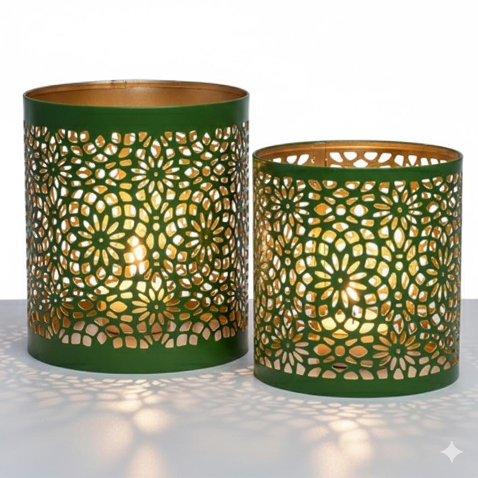 Wholesale Green Metal Tealight Candle Holder Set Floral Cutout Pattern Votive Lanterns For Home Wedding Table Decor Votive