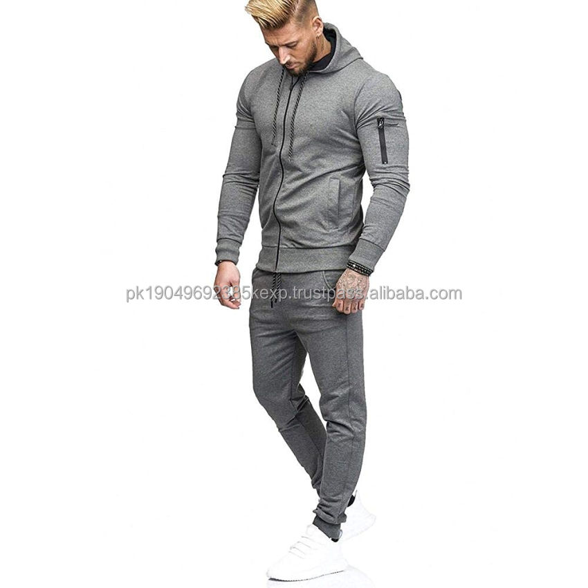 Wholesale Grey Tracksuit For Men Custom Plain Color Hoodie And Jogger Two Piece Casual Sportswear Supplier