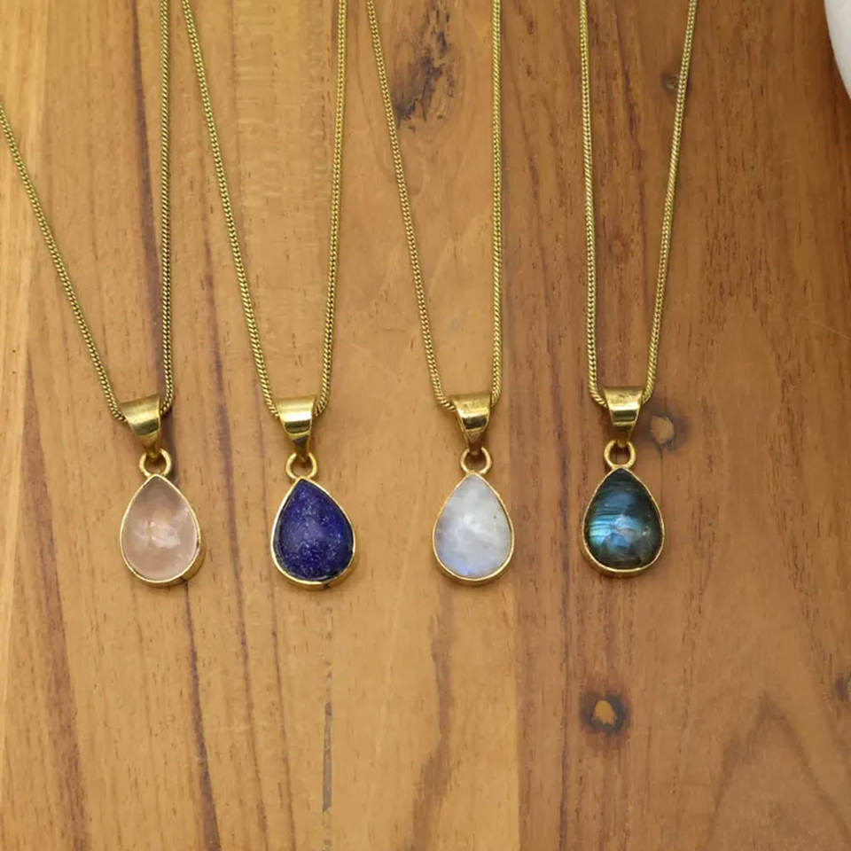 Wholesale HARI OM CREATIONS Vintage Aqua Chalcedony Gold Plated Brass Pendant Necklace Jewelry for Women
