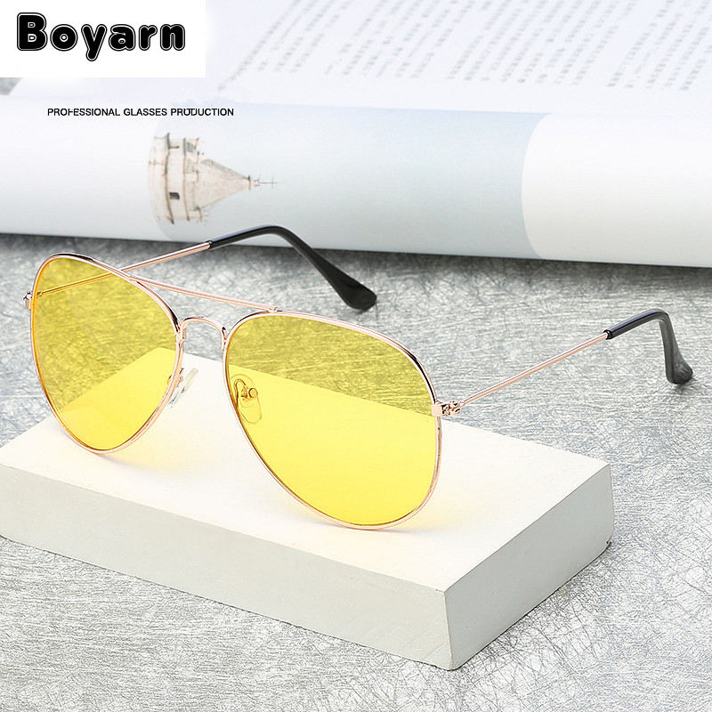 Wholesale HK-Boyarn Men's & Women's Night Vision Sunglasses with PC Lenses and Metal Frame Multi-Color for Night Driving