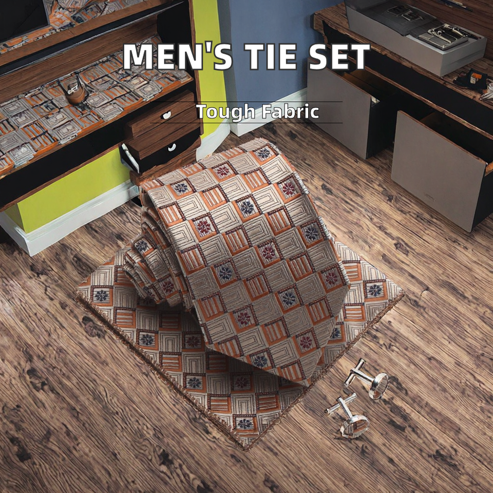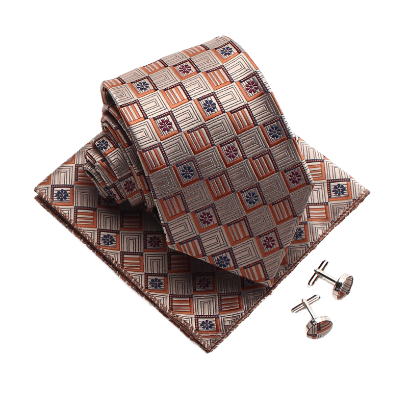 Wholesale HUISHI Three-Piece Floral Jacquard Polyester Necktie Set for Men Includes Pocket Square and Cufflinks for Casual Wear