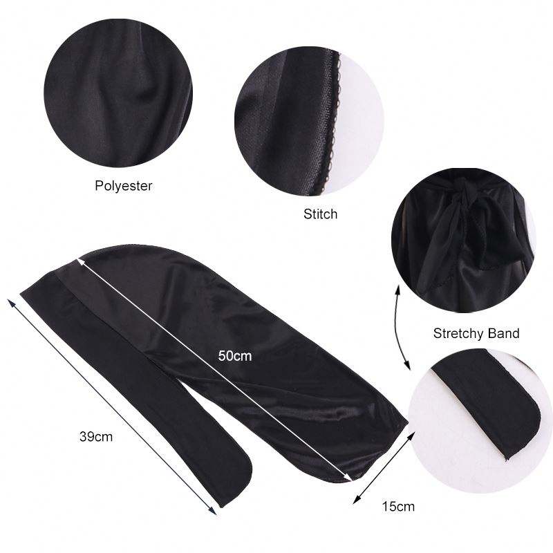 Wholesale Outdoor Fashion Hair Accessories Bandana Silky Satin Durag Long Tail with Elastic Solid Color HeadWrap for Men Women