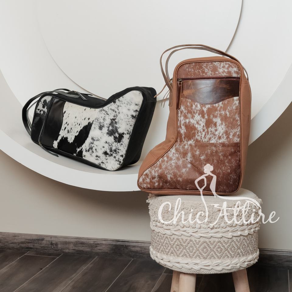 Wholesale Hair on Cowhide Leather Shoe Bags for Men & Women Personalized Genuine Leather Hiking Boot Bag Custom Shoe Travel Bag