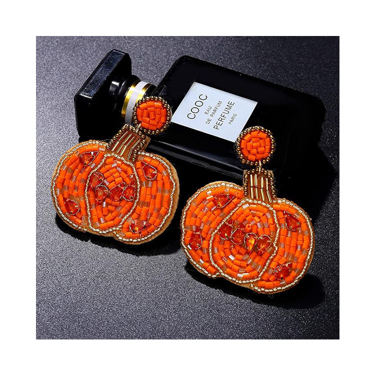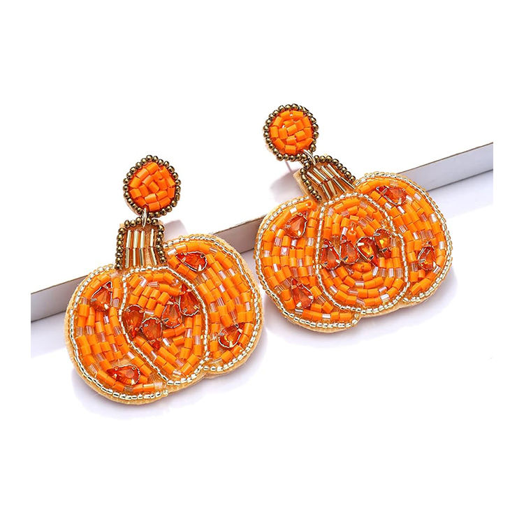 Wholesale Halloween and Christmas Accessories Gold Plated Pumpkin Skull Drop Earrings-Bulk Quantity Buy Now!