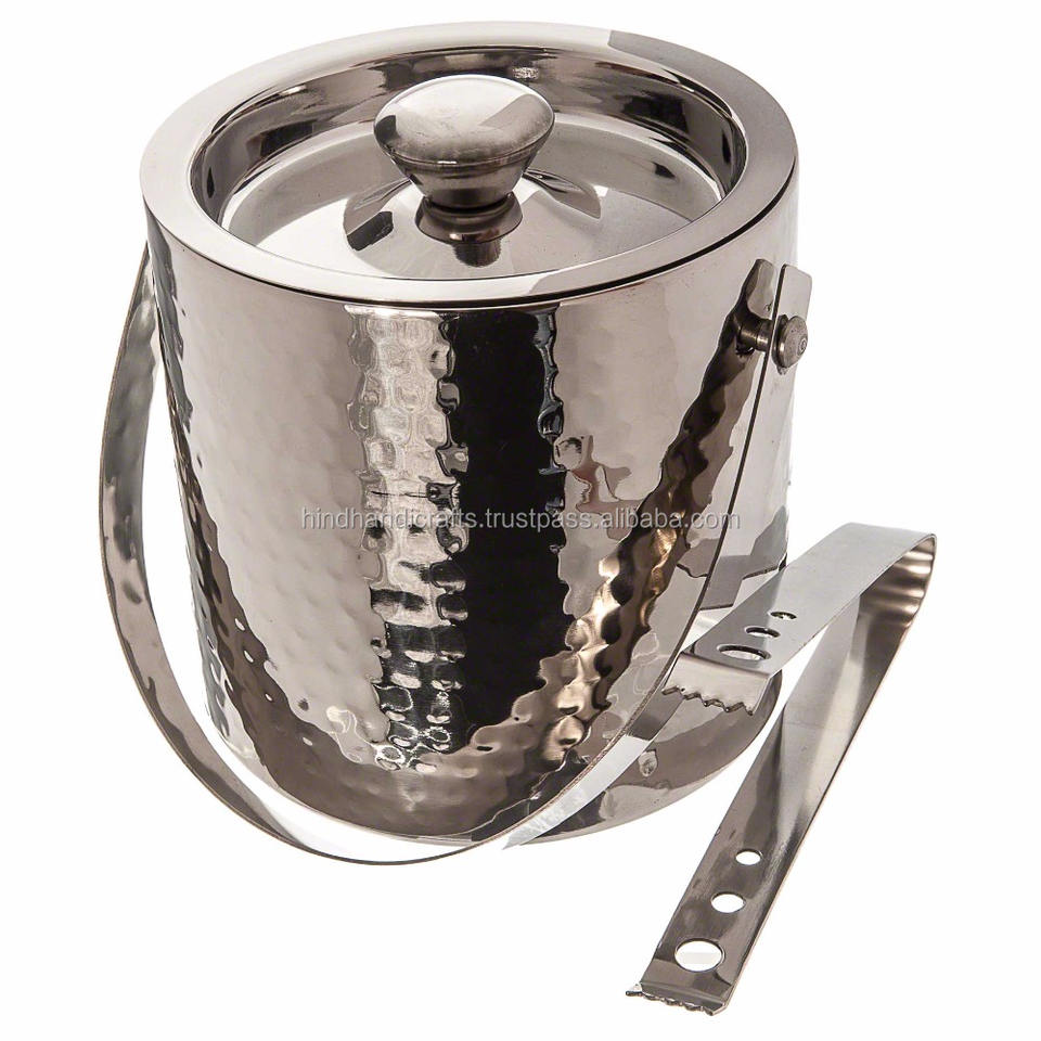 Wholesale Vintage Hammered Large Iron Ice Bucket with Gold Finishing with Handle Round Shape 5L Iron Wine Cooler