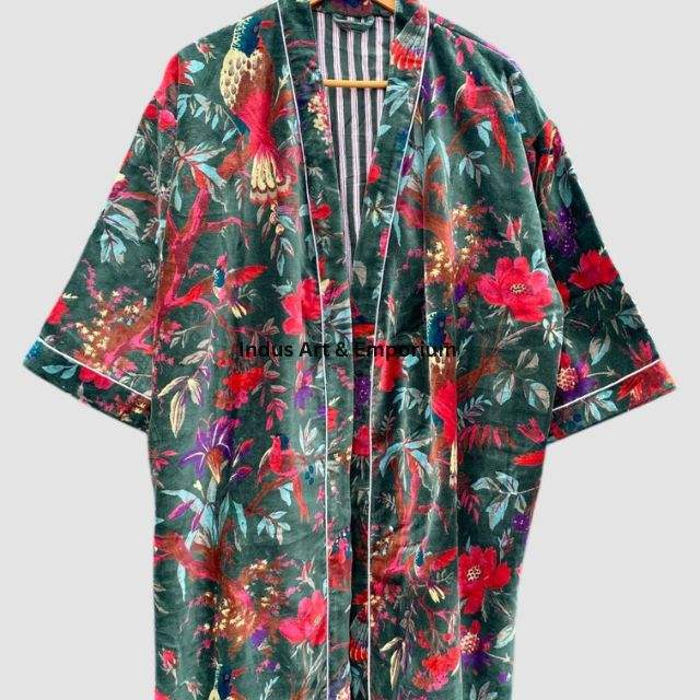 Wholesale Hand Block Printed Cotton velvet Kimono