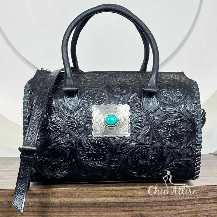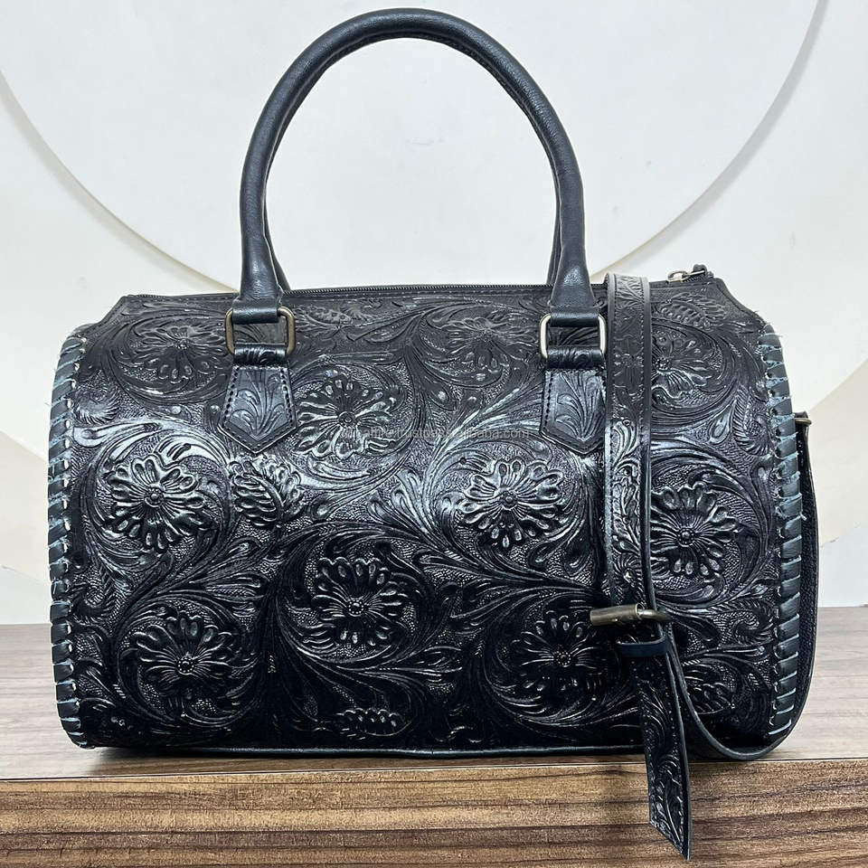 Product name:Hand Tooled Leather Large Weekend Travel Bag