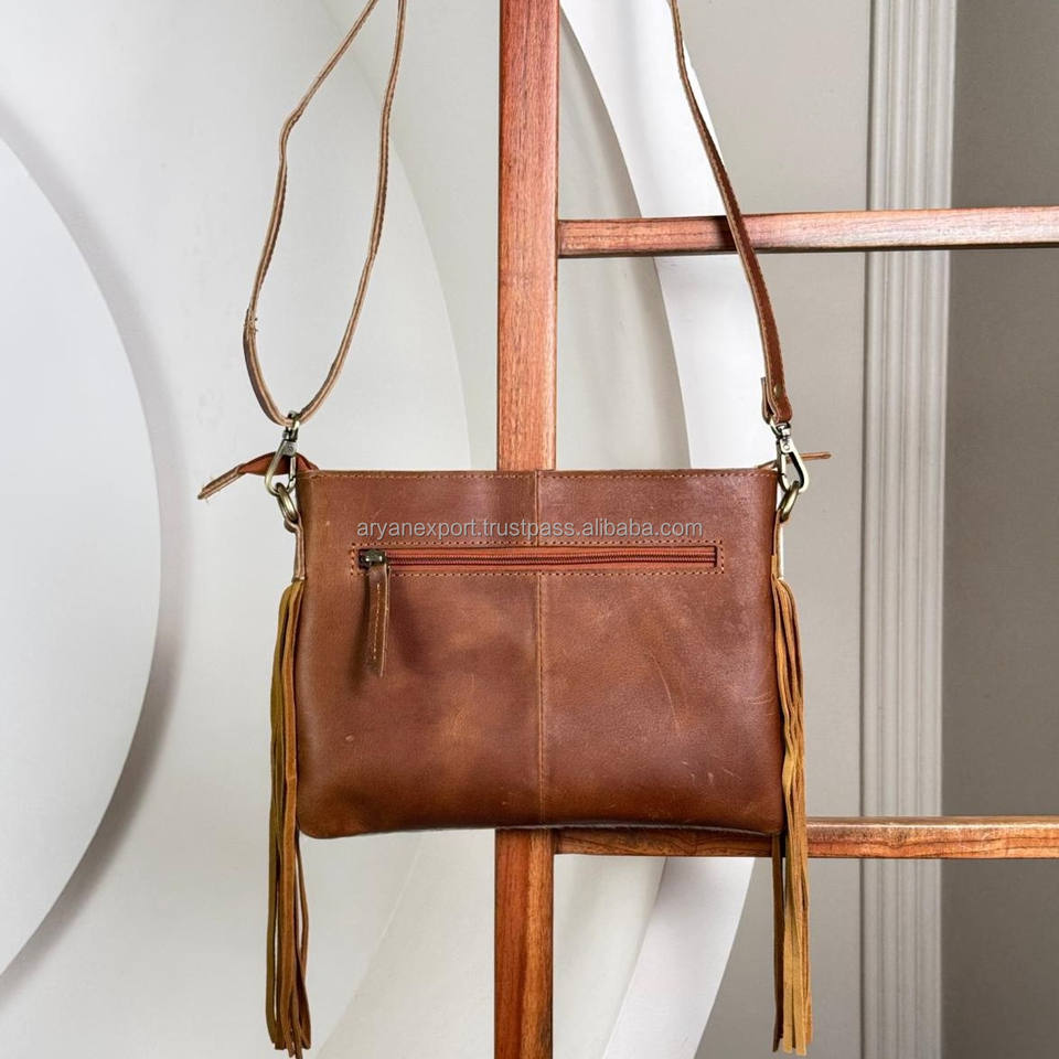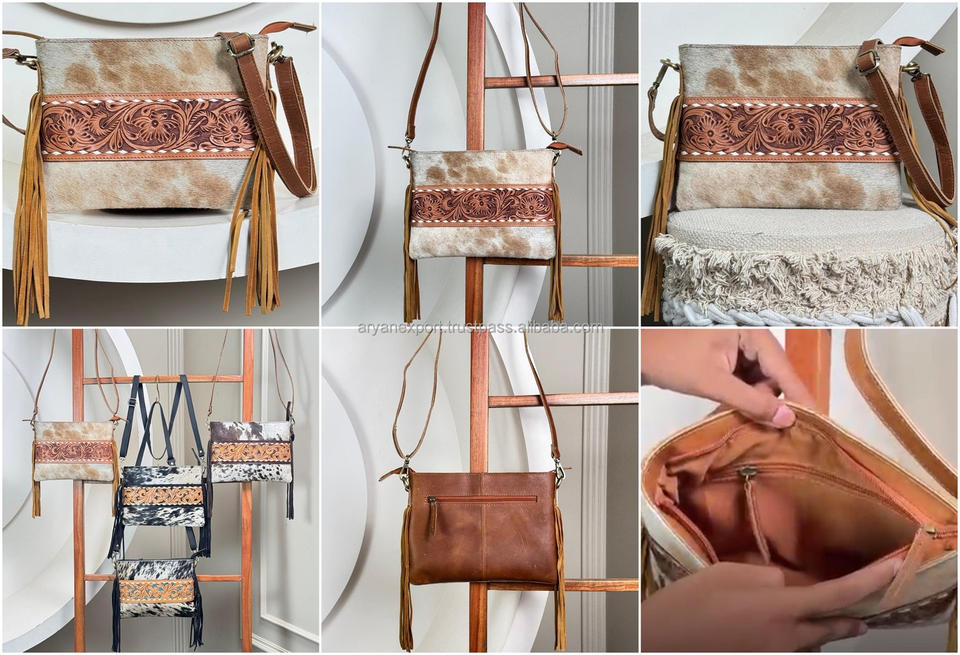 Wholesale Hand Tooled Cowhide Leather Fringe Crossbody Bag for Women Evening Clutch Handbag Genuine Leather Luxury Shoulder Bags